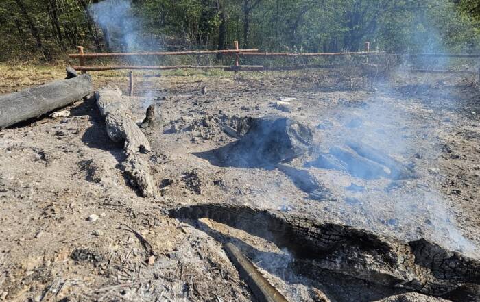 Nachlöscharbeiten nach dem Osterfeuer