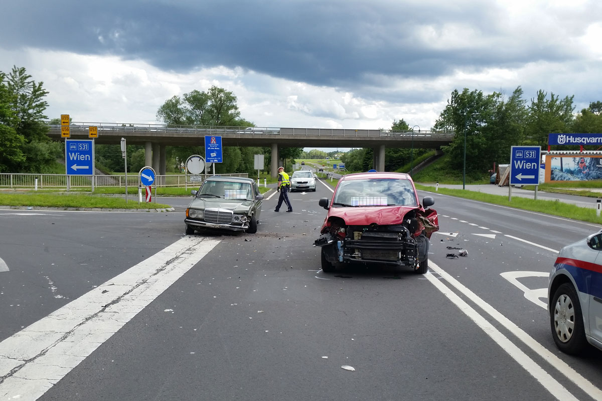 Im Bereich der Auffahrt zur S31 kam es auf der B50 im Ortsgebiet von Weppersdorf am 1. Juni zu einem Verkehrsunfall mit Blechschaden. Zwei Fahrzeuge waren im Kreuzungsbereich kolliediert. Die Freiwillige Feuerwehr Weppersdorf reinigte die Straße von Glassplittern und ausgelaufenem Öl und schleppte anschließend die Unfallfahrzeuge ab.