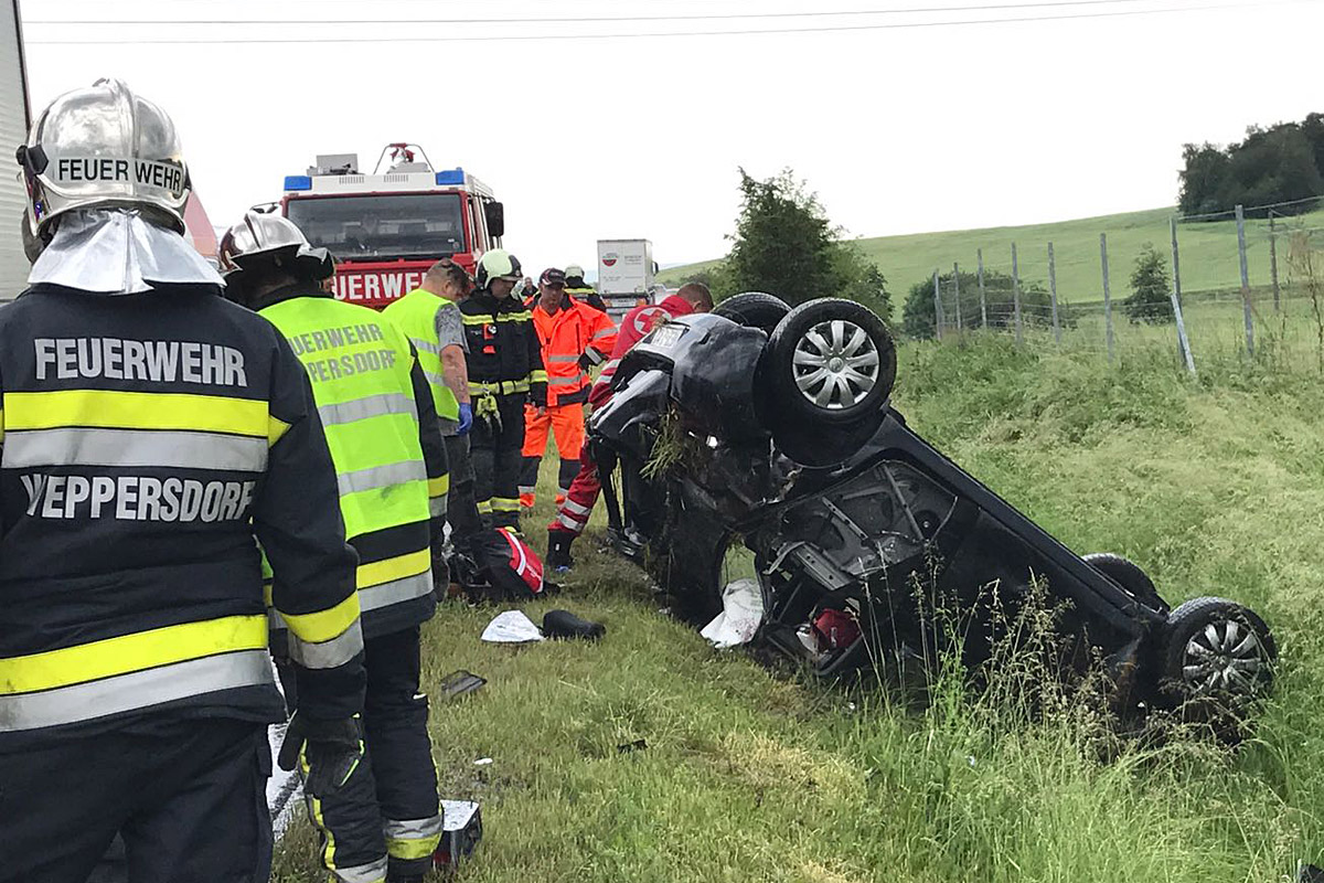Ein folgenschwerer Unfall ereignete sich am Mittwochnachmittag kurz vor 16 Uhr auf der Burgenlandschnellstraße S31 bei Weppersdorf. Ein ungarischer Pkw war von der Fahrbahn abgekommen und hatte sich mehrmals überschlagen. Zwei Männer wurden beim Unfall leicht verletzt, eine Frau erlitt tödliche Verletzungen und verstarb noch an der Unfallstelle.