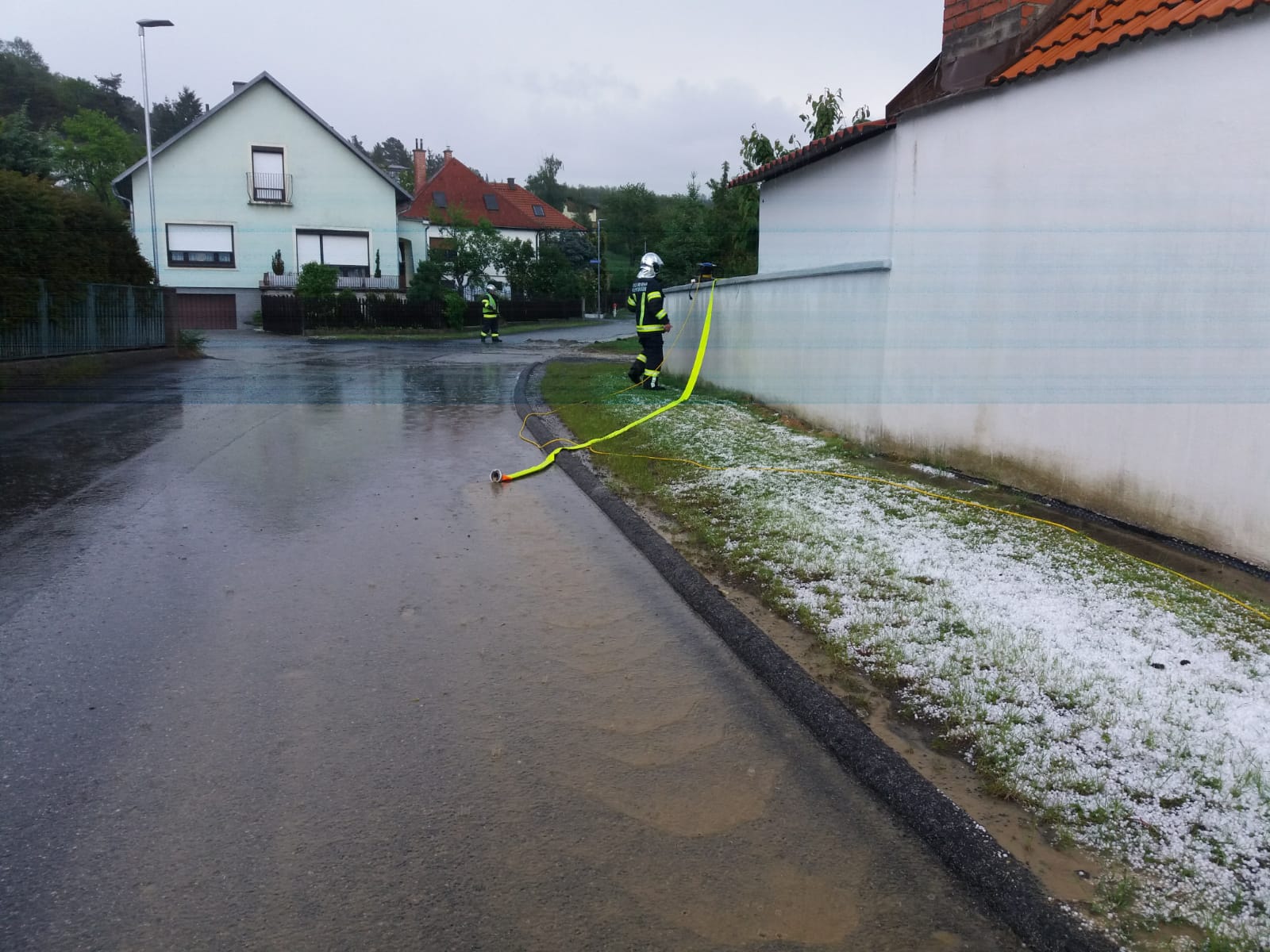 Hagel und starker Regen zogen am späten Samstagnachmittag über Weppersdorf hinweg. In der Waldgasse kam es dadurch bei einem Wohnhaus zu einem Wasser- und Schlammeintritt in den Keller. Die Feuerwehr wurde zu Hilfe gerufen und war wenig später mit 14 Feuerwehrleuten im Pumpeinsatz. Mittels Schmutzwasserpumpe und Nasssauger wurde der Keller wieder trocken gelegt. Außerdem musste mit Hilfe eines Baggers die Straße vor dem Haus ebenfalls gereinigt werden, denn Schlammassen machten diese nahezu unpassierbar. Anschließend wurde die Straße noch mittels Straßenwaschanlage und dem TLF gereinigt.