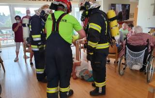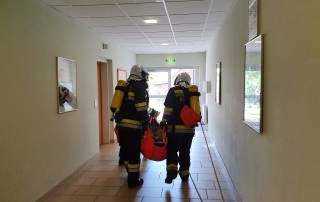 Als besondere Übungseinlage wurde simuliert, dass ein Atemschutzträger der Feuerwehr ohnmächtig wurde und von seinen Kameraden ebenfalls gerettet werden musste. Auch diese Übungseinlage meisterten die Einsatzkräfte bravourös und so zeigten sich alle beteiligten Einsatzorganisationen und auch die Leitung des Pflegekompetenzzentrums sehr zufrieden mit der Übung.