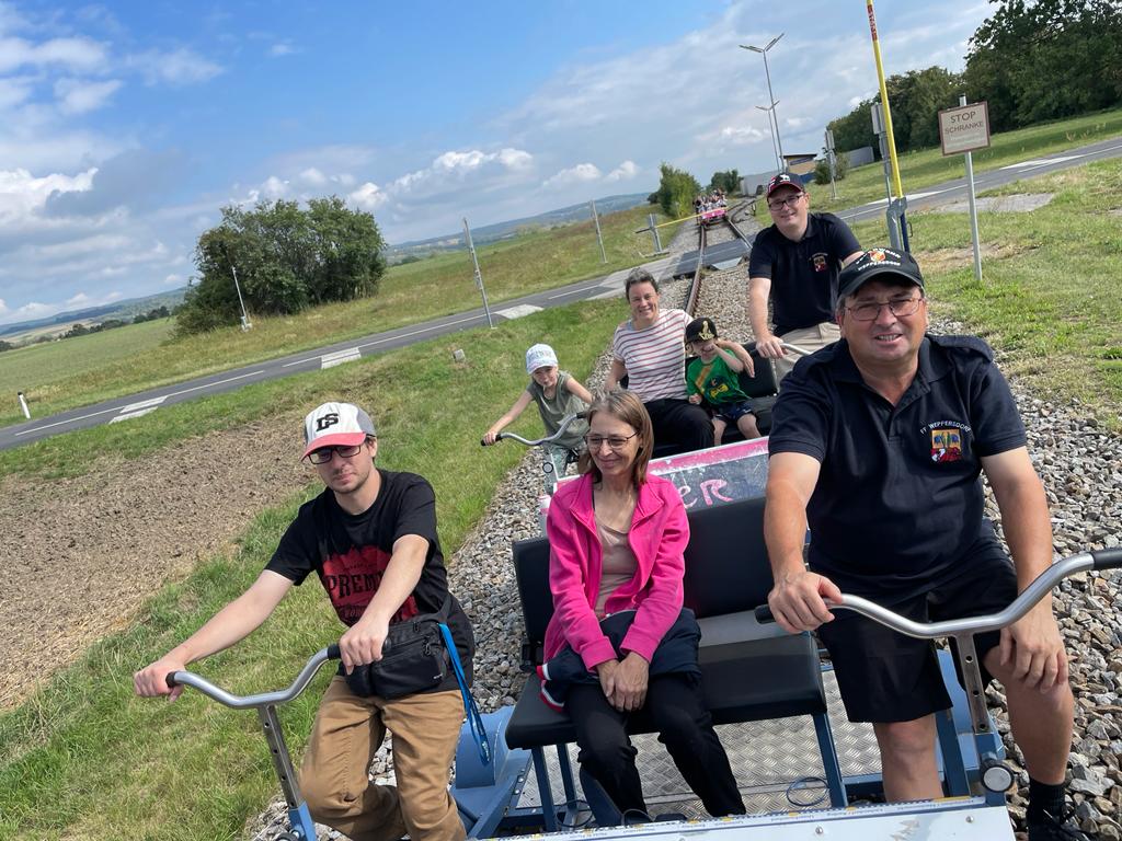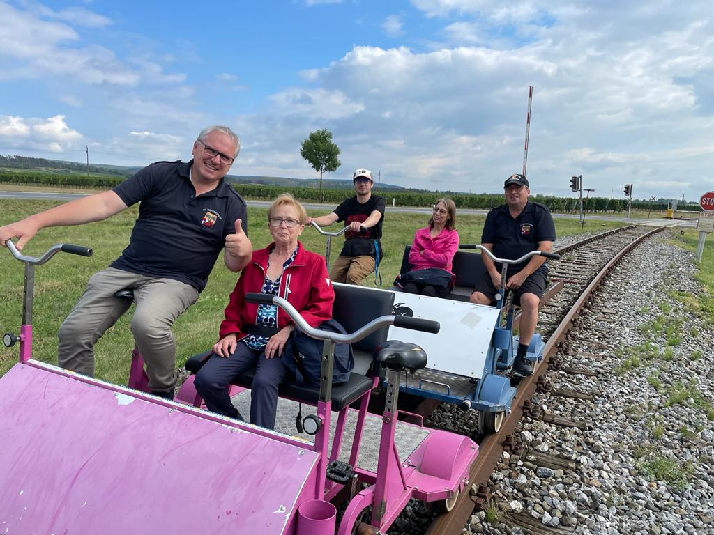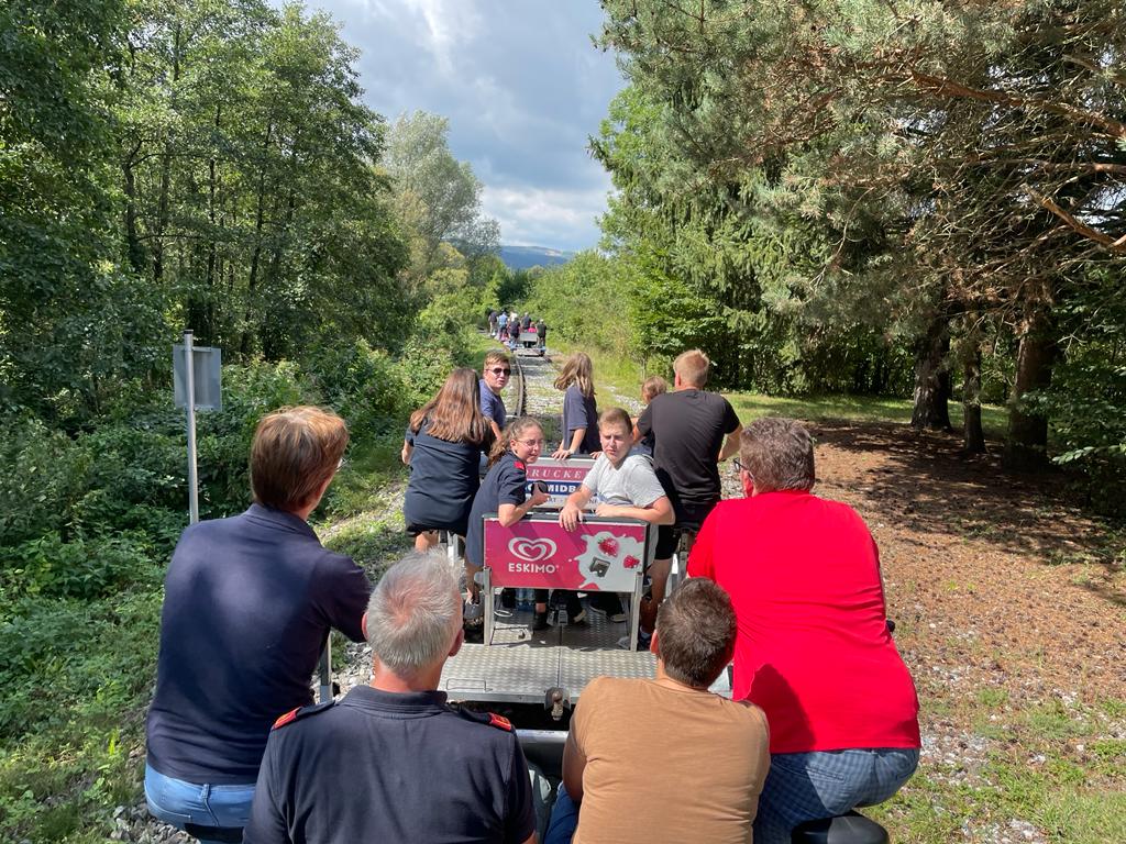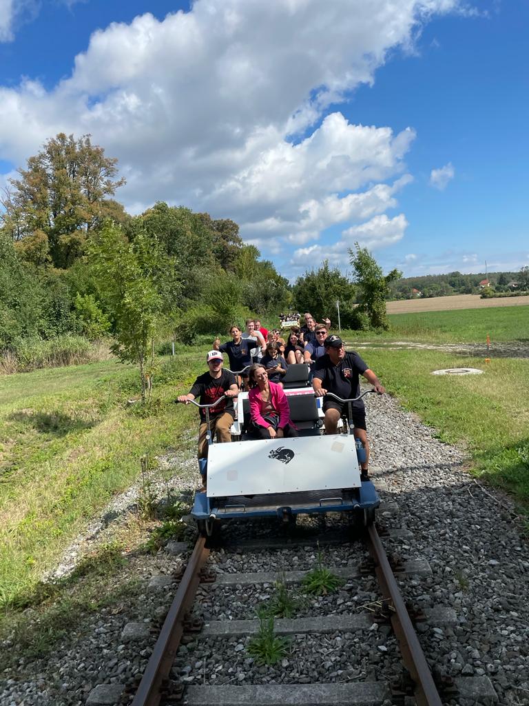 Sportliche Betätigung stand für Feuerwehrmitglieder aus Weppersdorf und deren Familien auf dem Programm: Beim Feuerwehrausflug galt es für die Teilnehmerinnen und Teilnehmer ordentlich in die Pedale zu treten, denn die 22 Kilometer lange Bahnstrecke zwischen Horitschon/Neckenmarkt und Oberpullendorf galt es mit der Draisine zurück zu legen. Mit viel Spaß und einigen Stärkungspausen unterwegs wurde die Strecke meisterhaft bewältigt und auch der Wettergott meinte es gut mit der Ausflugsgruppe, denn kurz vor dem Erreichen des Zielbahnhofes in Oberpullendorf zogen dicke dunkle Wolken auf und der letzte Kilometer musste im Slalom zwischem dein ein oder anderem Regentropfen zurück gelegt werden. Bei einer gemütlichen Stärkung im Habe Dere in Oberpullendorf klang der Feuerwehrausflug 2022 aus.