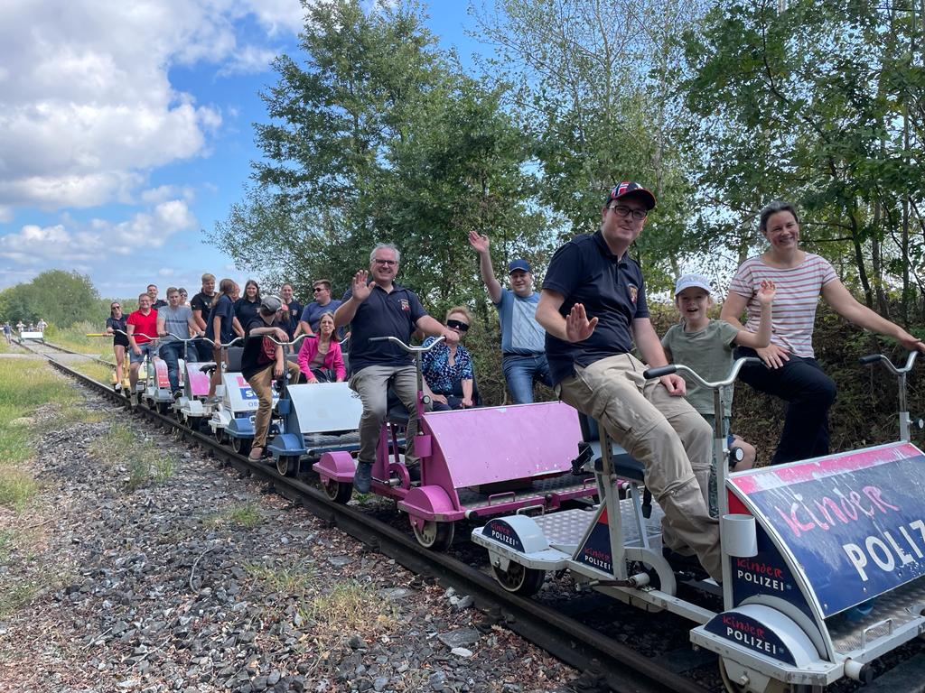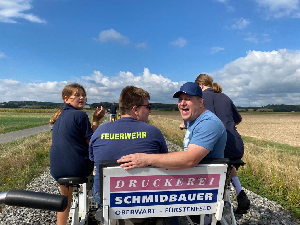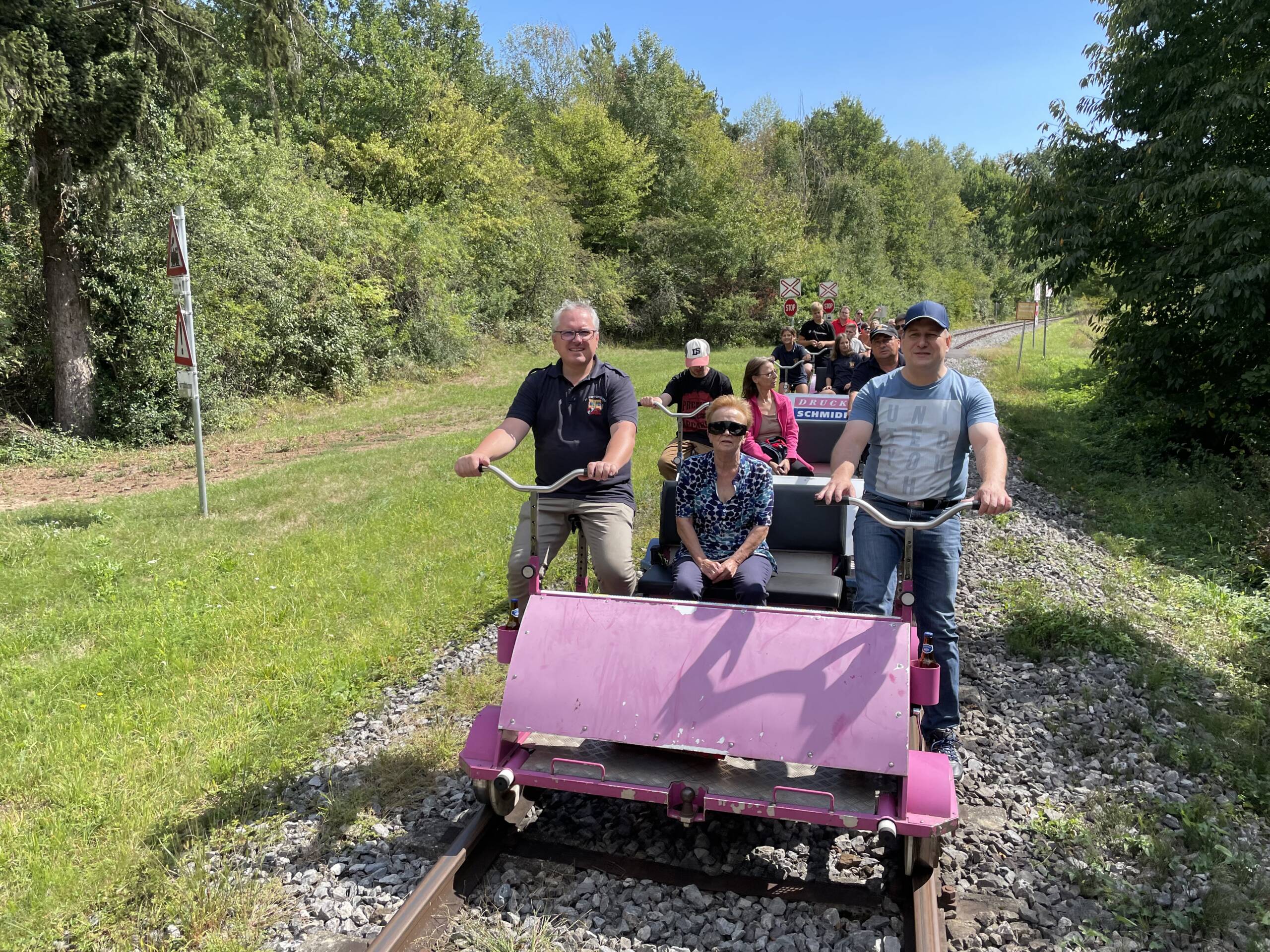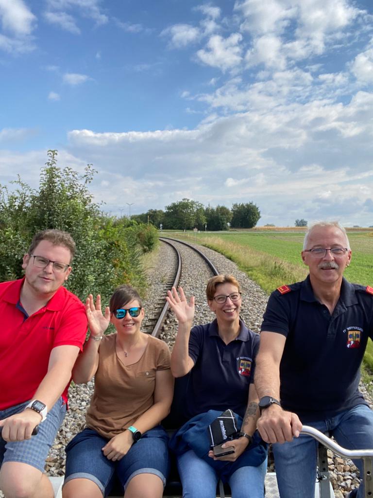 Sportliche Betätigung stand für Feuerwehrmitglieder aus Weppersdorf und deren Familien auf dem Programm: Beim Feuerwehrausflug galt es für die Teilnehmerinnen und Teilnehmer ordentlich in die Pedale zu treten, denn die 22 Kilometer lange Bahnstrecke zwischen Horitschon/Neckenmarkt und Oberpullendorf galt es mit der Draisine zurück zu legen. Mit viel Spaß und einigen Stärkungspausen unterwegs wurde die Strecke meisterhaft bewältigt und auch der Wettergott meinte es gut mit der Ausflugsgruppe, denn kurz vor dem Erreichen des Zielbahnhofes in Oberpullendorf zogen dicke dunkle Wolken auf und der letzte Kilometer musste im Slalom zwischem dein ein oder anderem Regentropfen zurück gelegt werden. Bei einer gemütlichen Stärkung im Habe Dere in Oberpullendorf klang der Feuerwehrausflug 2022 aus.