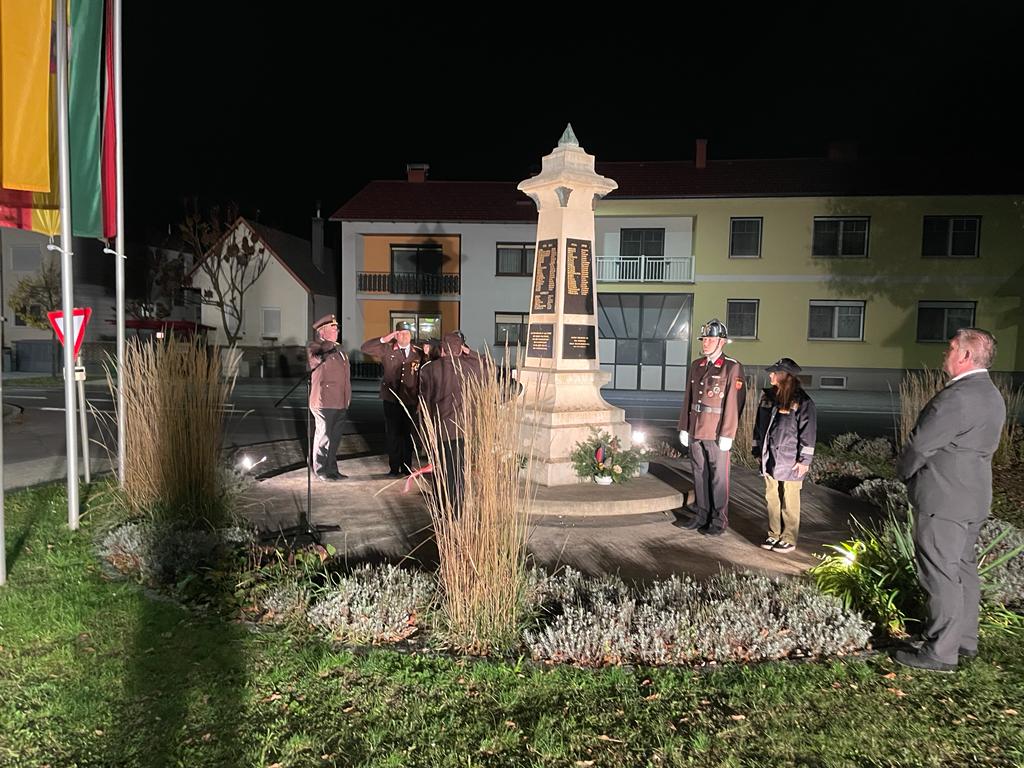 Kranzniederlegung am Kriegerdenkmal Zeige grösseres Bild Traditionell wird zu Allerheiligen den Gefallenen der beiden Weltkriege gedacht. So auch in diesem Jahr wieder in Weppersdorf. Die Feuerwehr Weppersdorf legte einen Kranz am Kriegerdenkmal am Hauptplatz nieder.Bilder Jacob Schumann2022-11-05T17:10:21+02:00