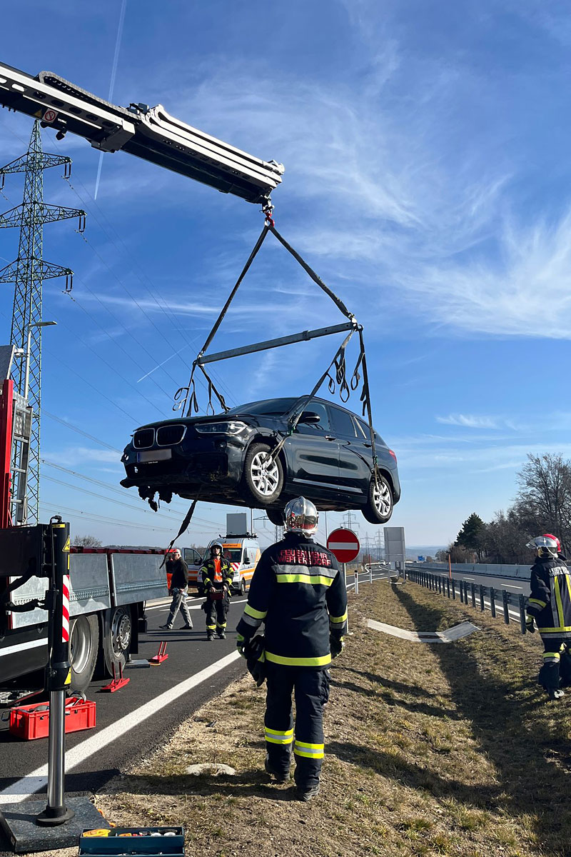 Die Feuerwehr Weppersdorf rückte zur Einsatzstelle aus, stellte die Brandschutz sicher, reinigte die Fahrbahn und barg das Unfallfahrzeug mittels Kran aus dem Graben. Anschließend wurde das Unfallfahrzeug auf einem nahen Parkplatz gesichert abgestellt.