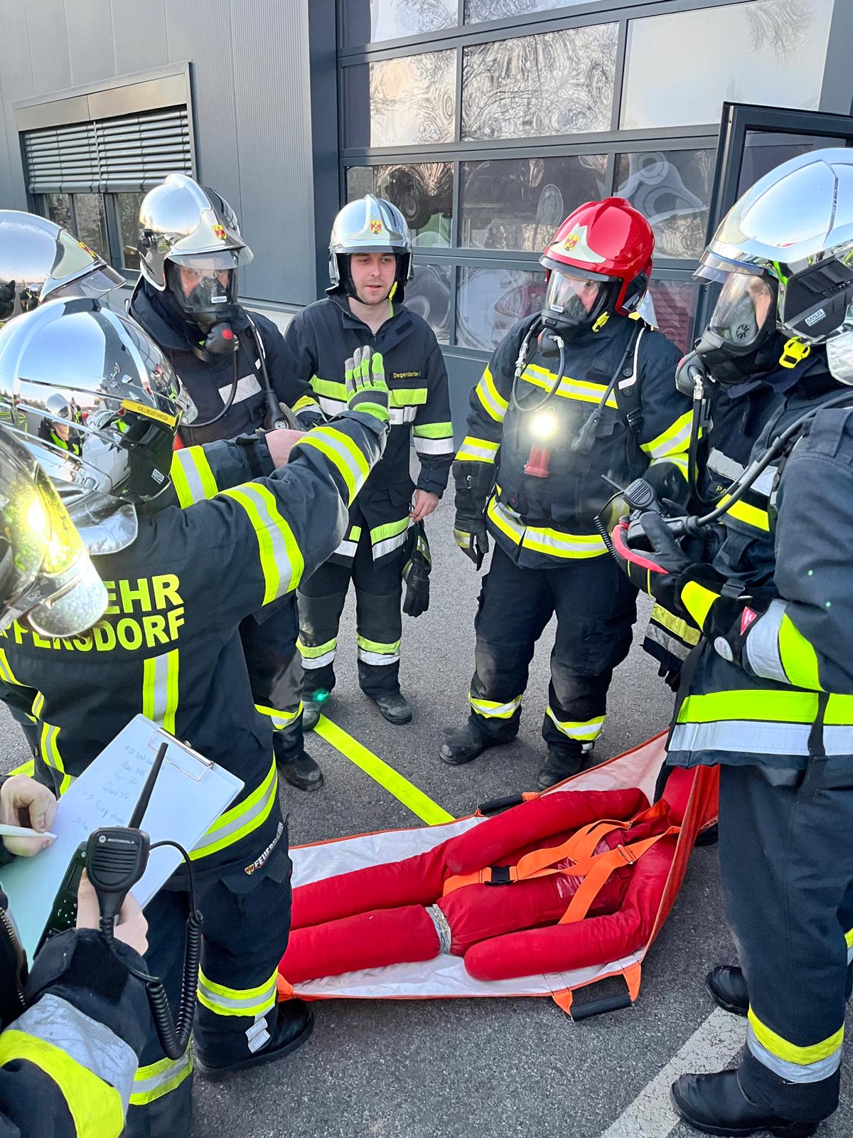 Anlass für die diesmalige Übung am Freitag, 04.04.2025, war ein „Brand“ in der Firma Autoliebe in Weppersdorf. Aufgrund der Tatsache, dass die nächsten Hydranten weit entfernt bzw. durch die Schnellstraßenabfahrt sowie die Bundesstraße getrennt sind, war das Ziel für die Löschwasser-Entnahmestelle der Bach, welcher am Firmengelände angrenzt. Während ein Teil der Mannschaft mit dem Aufstauen des Baches bzw. der Wasserversorgung beschäftigt war, bereitete der Rest den Innenangriff inklusive Atemschutz sowie weitere Außenangriffe vor. Eine verletzte Person sowie ein Gefahrgutbehälter musste vom Atemschutztrupp ins Freie gebracht werden.
