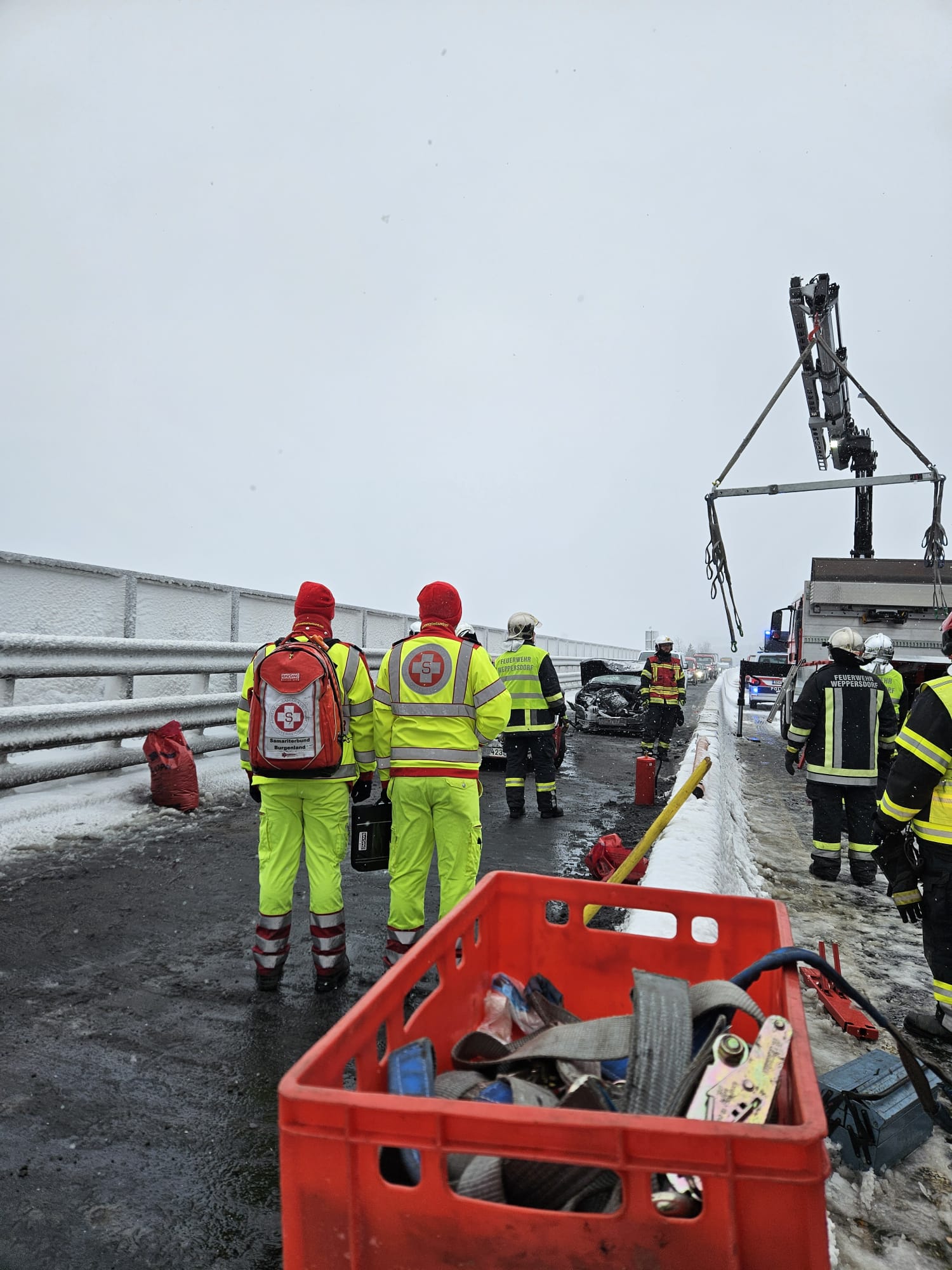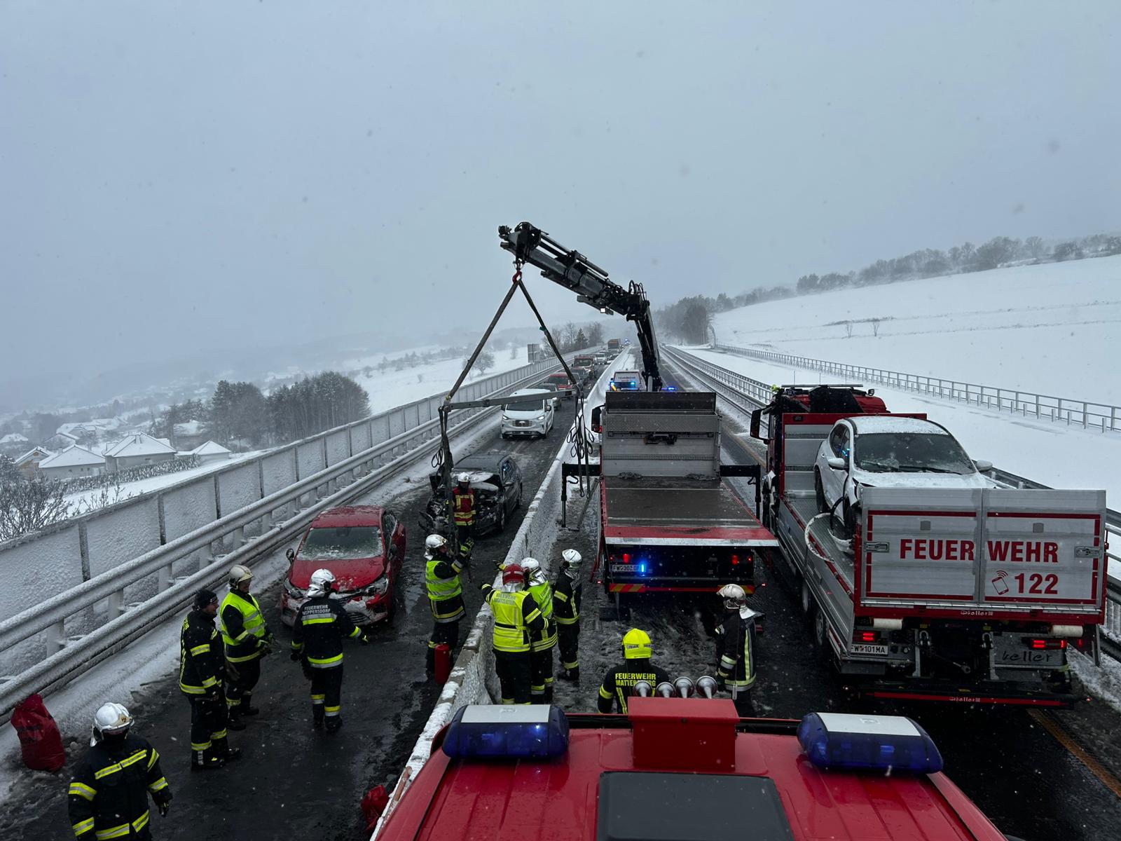Weiters standen der Arbeitersamariterbund Weppersdorf, mehrere Streifen der Polizei, die ASFINAG sowie die Feuerwehr Mattersburg im Einsatz. Wir bedanken uns bei allen Beteiligten für die großartige Zusammenarbeit bei diesen winterlichen Verhältnissen.