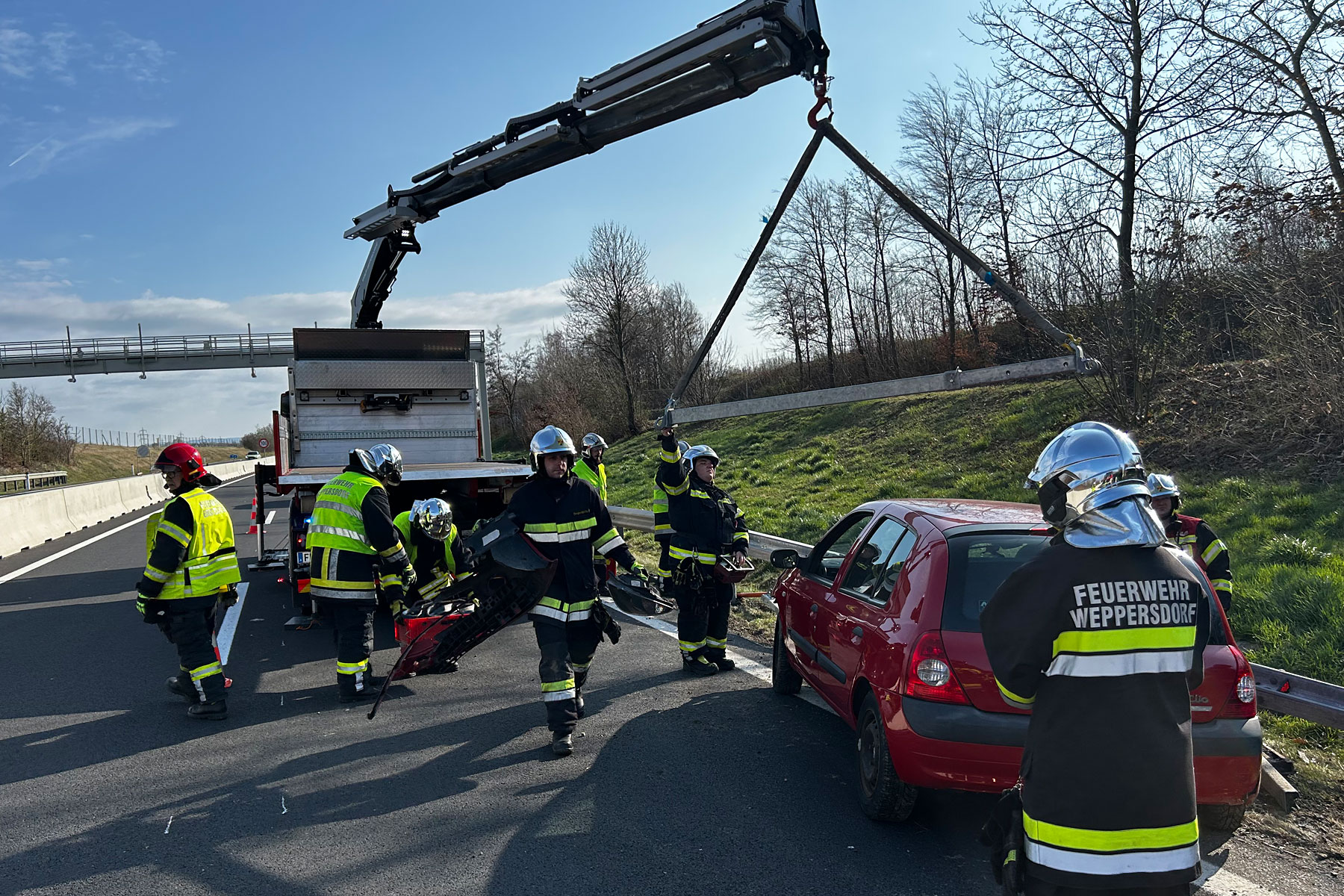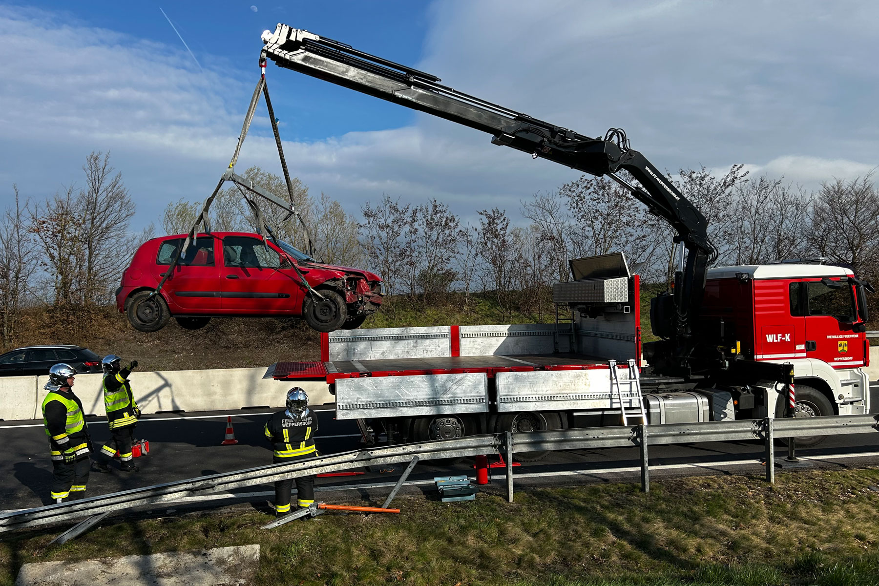 Glücklicherweise ohne Verletzungen endete ein Ausrutscher für eine Dame aus Wien mit ihrem Fahrzeug auf der S31 bei Weppersdorf. Sie war aus unbekannter Ursache in die Leitplanken gekracht. Die Feuerwehr Weppersdorf wurde von der Polizei um Hilfe gerufen und konnte das Unfallauto rasch unter der Leitplanke hervorziehen und anschließend mittels Kran bergen.