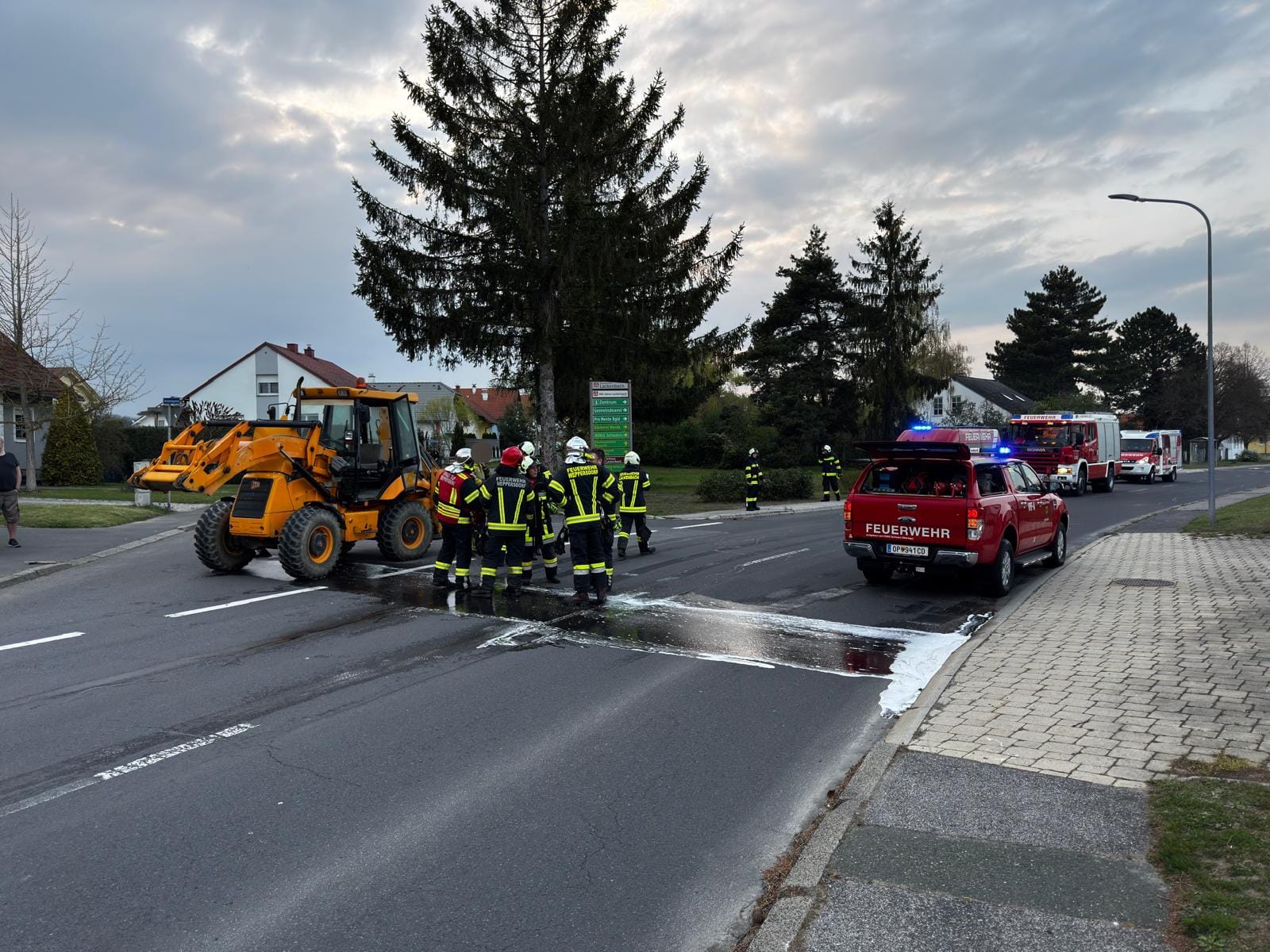 Zu einem Baggerbrand wurden die Mitglieder der Feuerwehr Weppersdorf und Lackenbach gemeinsam am Mittwochabend, den 15.04.2026, in Lackenbach alarmiert. Durch rasches Handeln von aufmerksamen Passanten konnte der Brand bereits bei Eintreffen der Wehren gelöscht werden, sodass schlimmeres verhindert werden konnte.