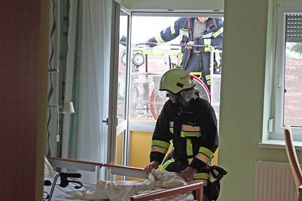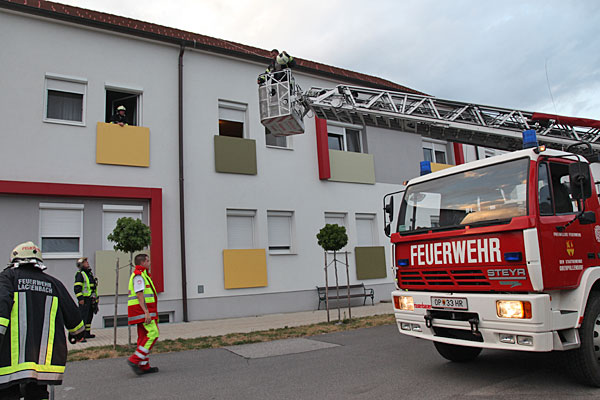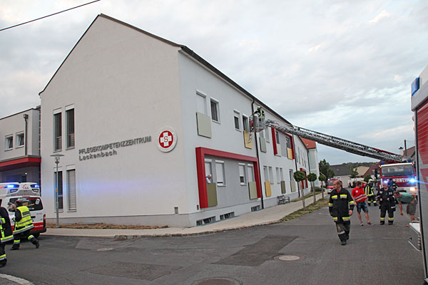 Bange Minuten gab es am 15. Juli für die Bewohner des Pflegekompetenzzentrums in Lackenbach. In einem Zimmer im Obergeschoß war ein Brand ausgebrochen. Die automatische Brandmeldeanlage hatte sofort alarm geschlagen. Die erstausrückende Feuerwehr Lackenbach rüstete sich sofort mit schwerem Atemschutz aus und konnte den Brand rasch löschen. Die nachalarmierte Feuerwehr Weppersdorf führte ebenfalls unter schwerem Atemschutz die weitere evakuierung der noch im Gebäude befindlichen teils bettlägrigen Personen durch. Anschließend wurde mittels Hochleistungslüfter das gesamte Gebäude belüftet. Auch die Stadtfeuerwehr Oberpullendorf wurde mit der Drehleiter zur Unterstützung angefordert.