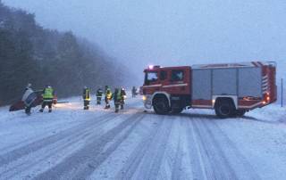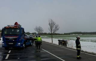 Technischer Einsatz: Spiegelglatte Straßen und starker Wind führten in Kombination mit dem starken Schneefall der Nacht zu einem Unfall [...]