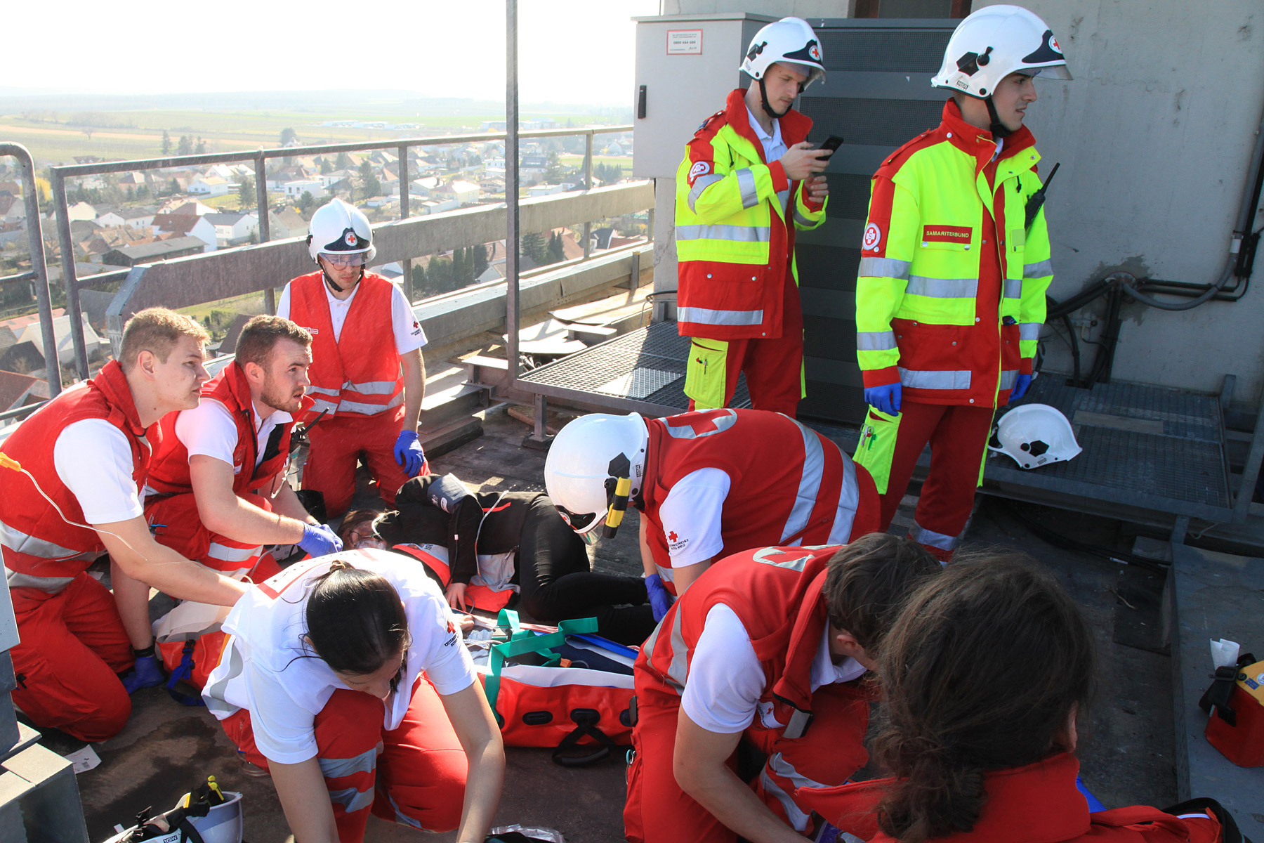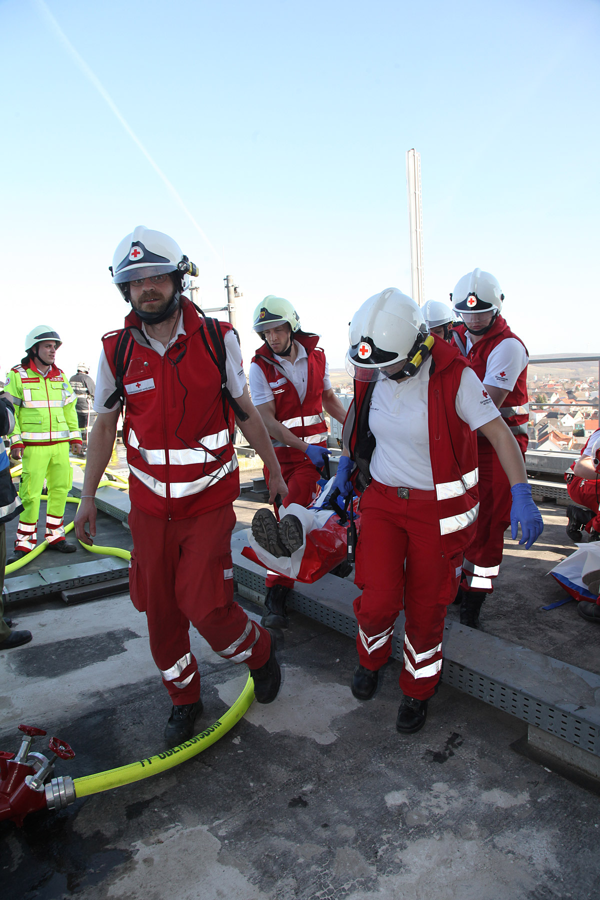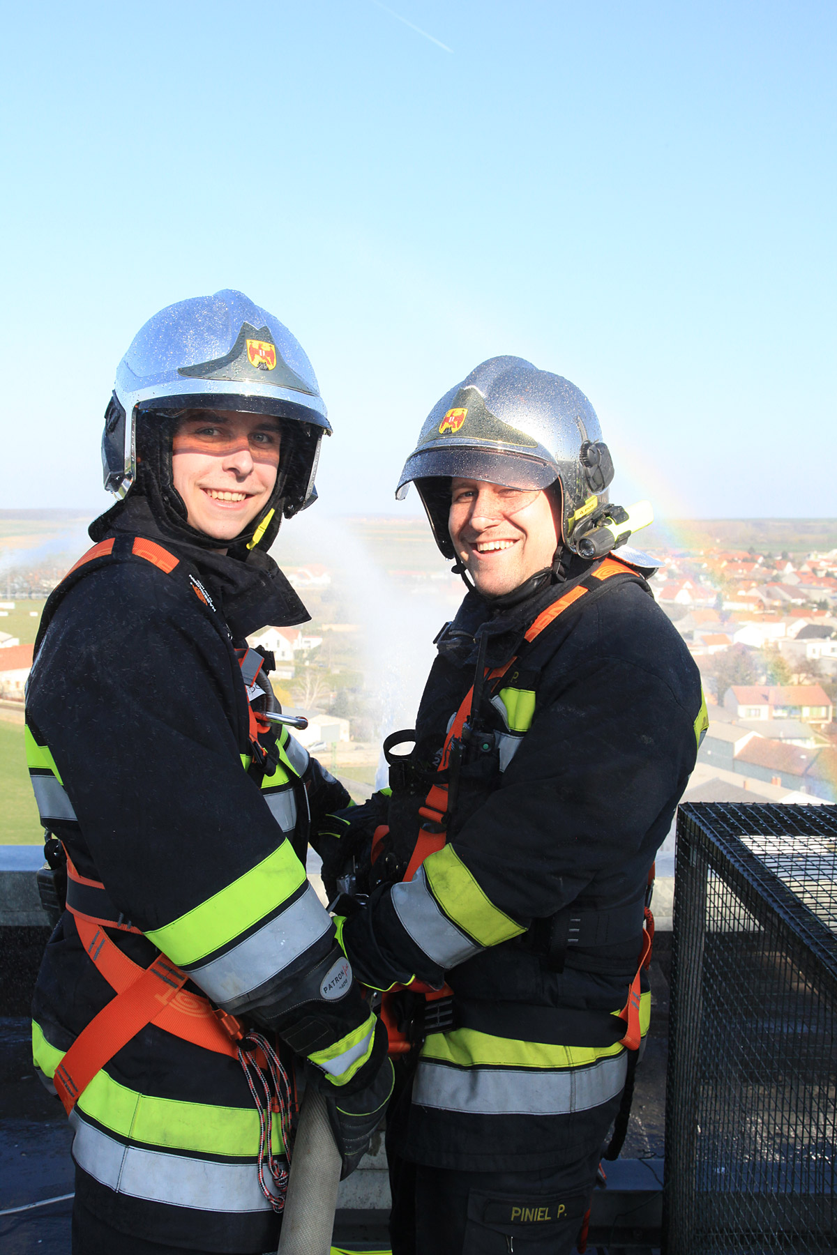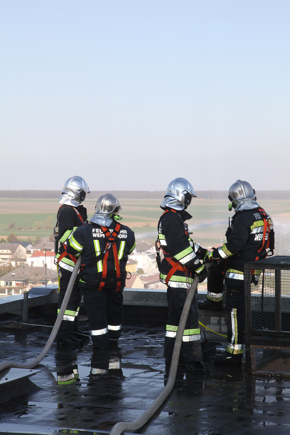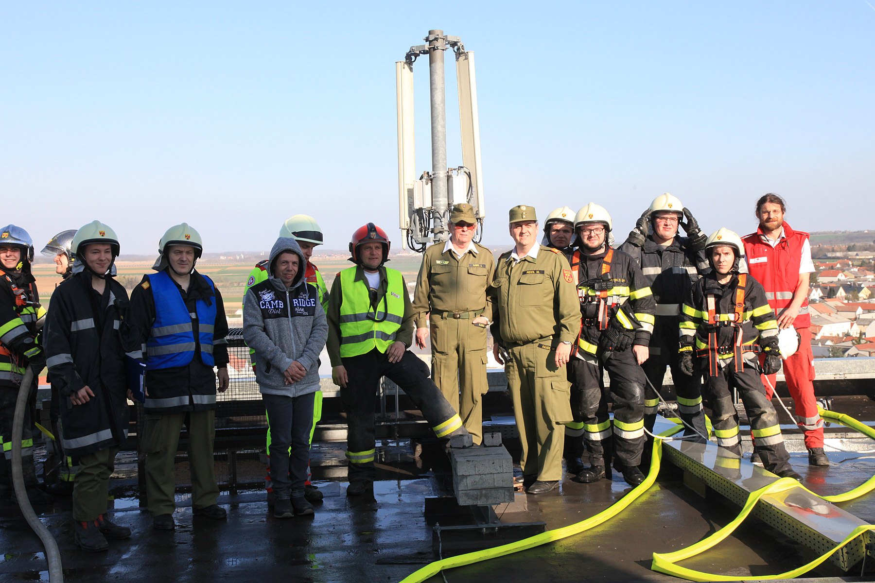 Dort mussten einerseite Löschleitungen über lange Distanzen aufgebaut werden. Zudem musste eine Löschleitung auf die rund 40 Meter hohe Plattform des Silos des Lagerhaus Deutschkreutz gebracht werden, eine schweißtreibende Arbeit für die Einsatzkräfte. Zeitgleich galt es im Keller des Gebäudes unter schwerem Atemschutz mehrere verletzte Personen zu retten.