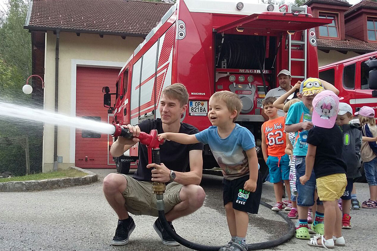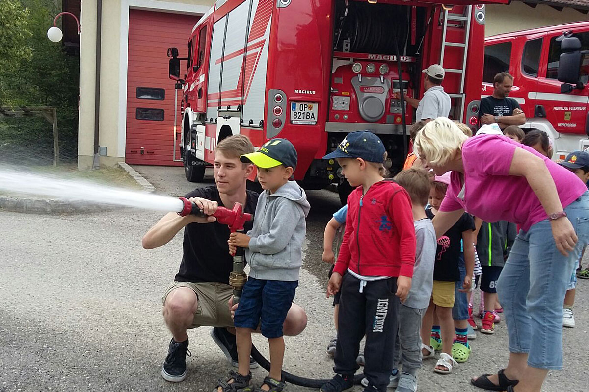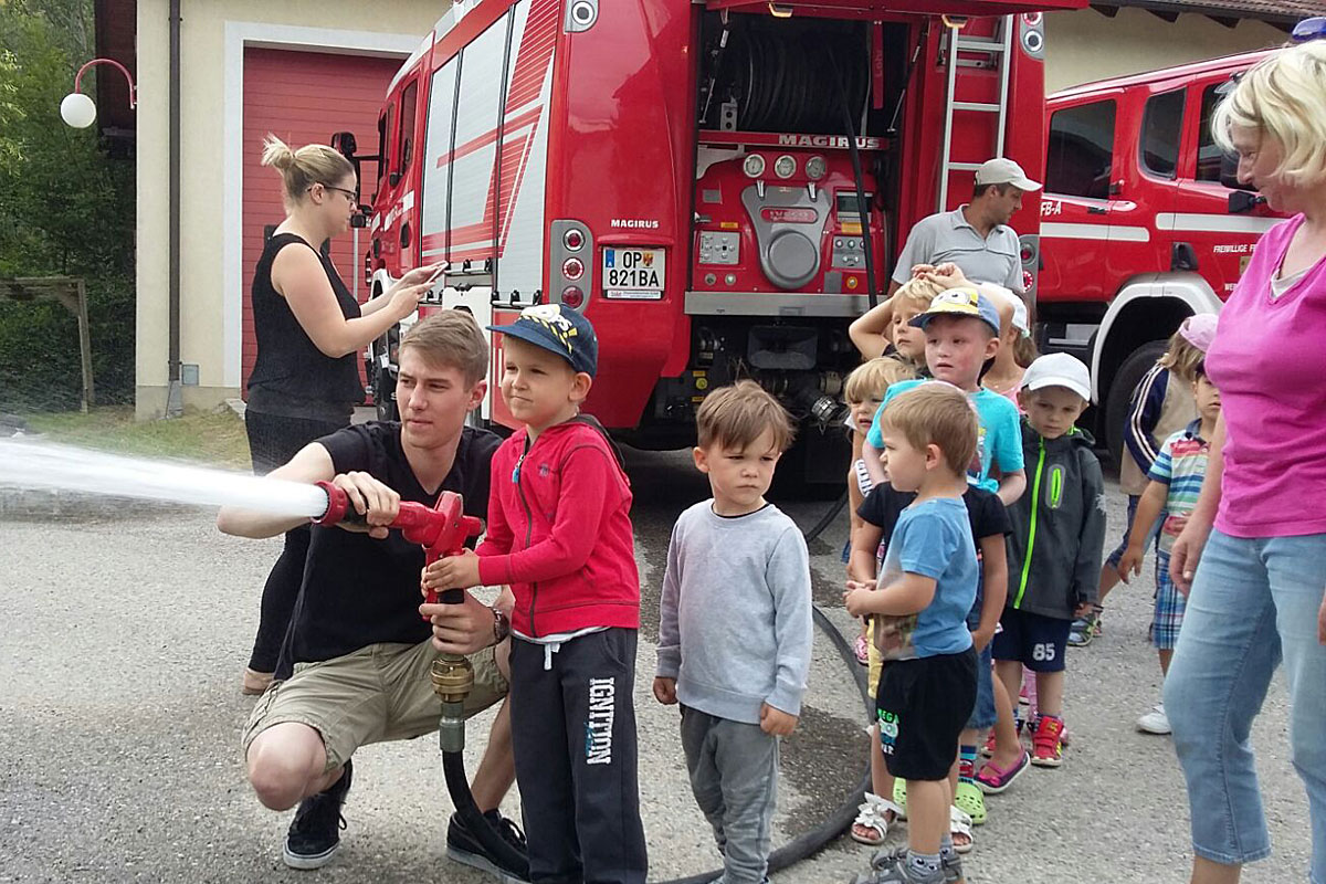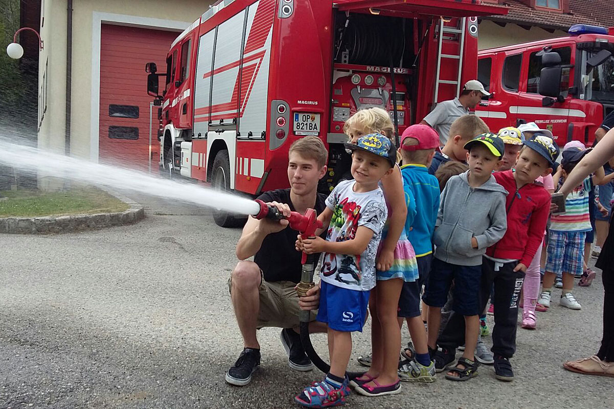 Die großen roten Autos wirken auf Kinder seit jeher anziehend und faszinierend zu gleich. Die Kindergartenkinder von Weppersdorf konnten diese kürzlich ganz aus der Nähe bestaunen, als sie nämlich einen ganzen Vormittag bei der Freiwilligen Feuerwehr Weppersdorf verbrachten. Anfassen und ausprobieren war dabei ausdrücklich erlaubt und erwünscht und einige Mitglieder der Feuerwehr Weppersdorf nahmen sich in Ruhe Zeit, die ganzen Geräte und Ausrüstungsgegenstände der Feuerwehr Weppersdorf den jüngsten Bewohnern von Weppersdorf genauestens zu erklären. Besonderes Highlight für die Kids war sicherlich das Zielspritzen, wo sie selbst einmal Feuerwehrmann spielen konnten.