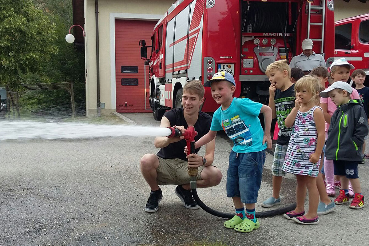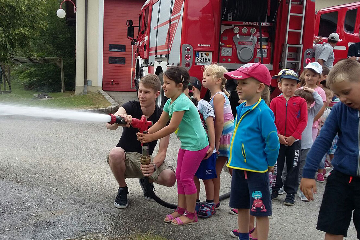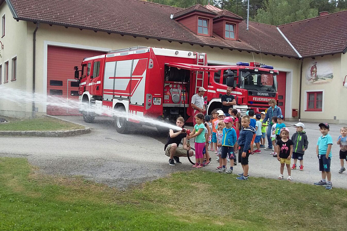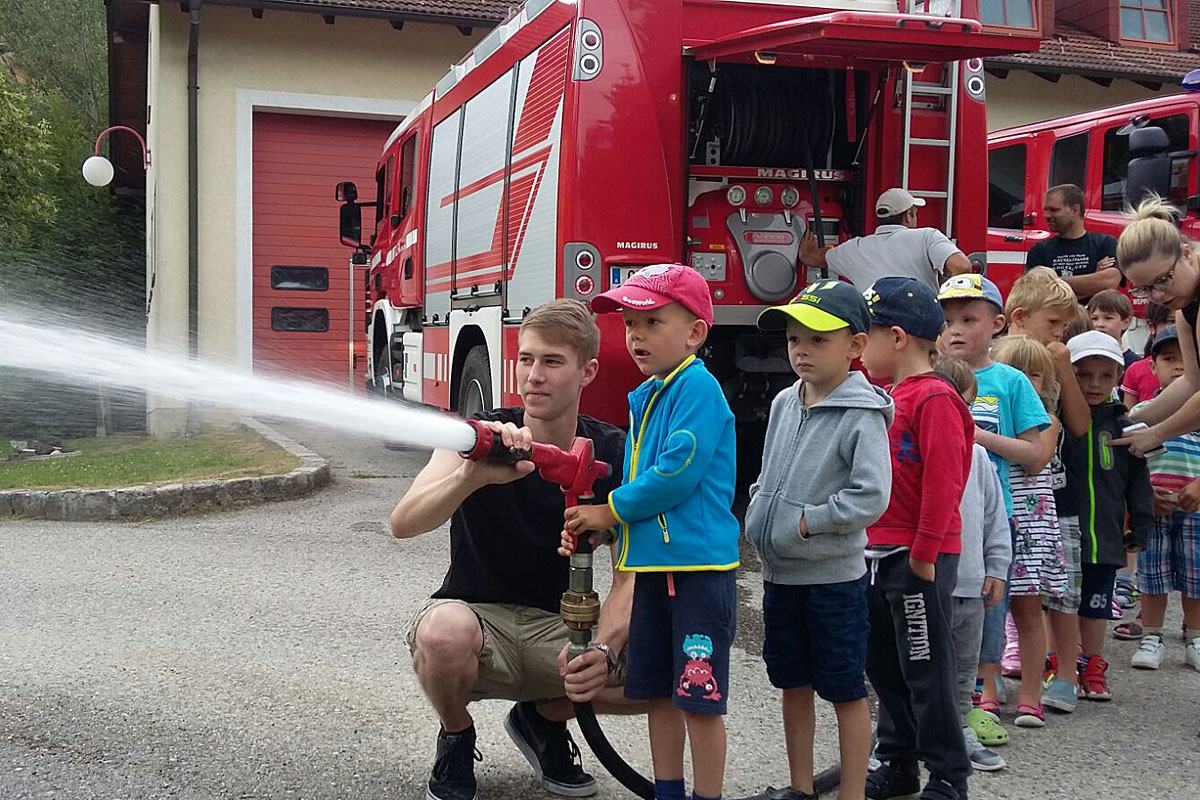 Die großen roten Autos wirken auf Kinder seit jeher anziehend und faszinierend zu gleich. Die Kindergartenkinder von Weppersdorf konnten diese kürzlich ganz aus der Nähe bestaunen, als sie nämlich einen ganzen Vormittag bei der Freiwilligen Feuerwehr Weppersdorf verbrachten. Anfassen und ausprobieren war dabei ausdrücklich erlaubt und erwünscht und einige Mitglieder der Feuerwehr Weppersdorf nahmen sich in Ruhe Zeit, die ganzen Geräte und Ausrüstungsgegenstände der Feuerwehr Weppersdorf den jüngsten Bewohnern von Weppersdorf genauestens zu erklären. Besonderes Highlight für die Kids war sicherlich das Zielspritzen, wo sie selbst einmal Feuerwehrmann spielen konnten.