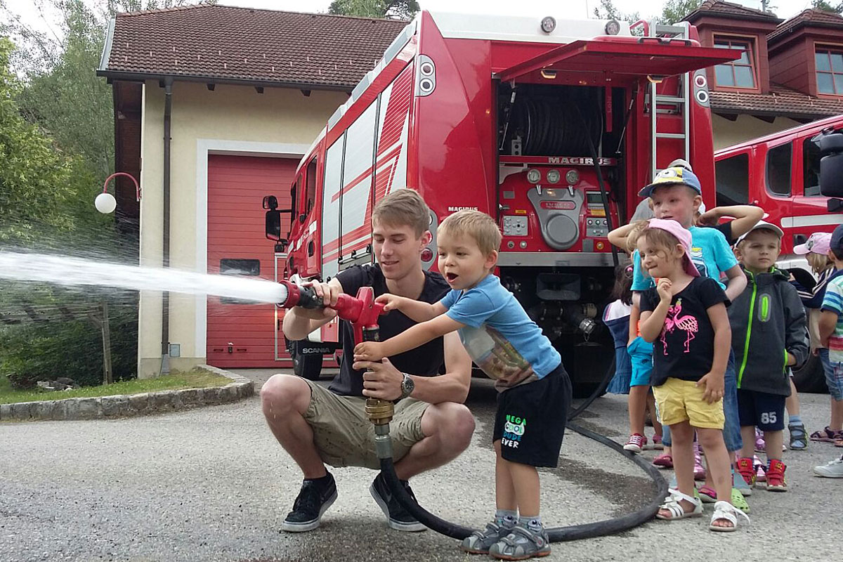 Die großen roten Autos wirken auf Kinder seit jeher anziehend und faszinierend zu gleich. Die Kindergartenkinder von Weppersdorf konnten diese kürzlich ganz aus der Nähe bestaunen, als sie nämlich einen ganzen Vormittag bei der Freiwilligen Feuerwehr Weppersdorf verbrachten. Anfassen und ausprobieren war dabei ausdrücklich erlaubt und erwünscht und einige Mitglieder der Feuerwehr Weppersdorf nahmen sich in Ruhe Zeit, die ganzen Geräte und Ausrüstungsgegenstände der Feuerwehr Weppersdorf den jüngsten Bewohnern von Weppersdorf genauestens zu erklären. Besonderes Highlight für die Kids war sicherlich das Zielspritzen, wo sie selbst einmal Feuerwehrmann spielen konnten.