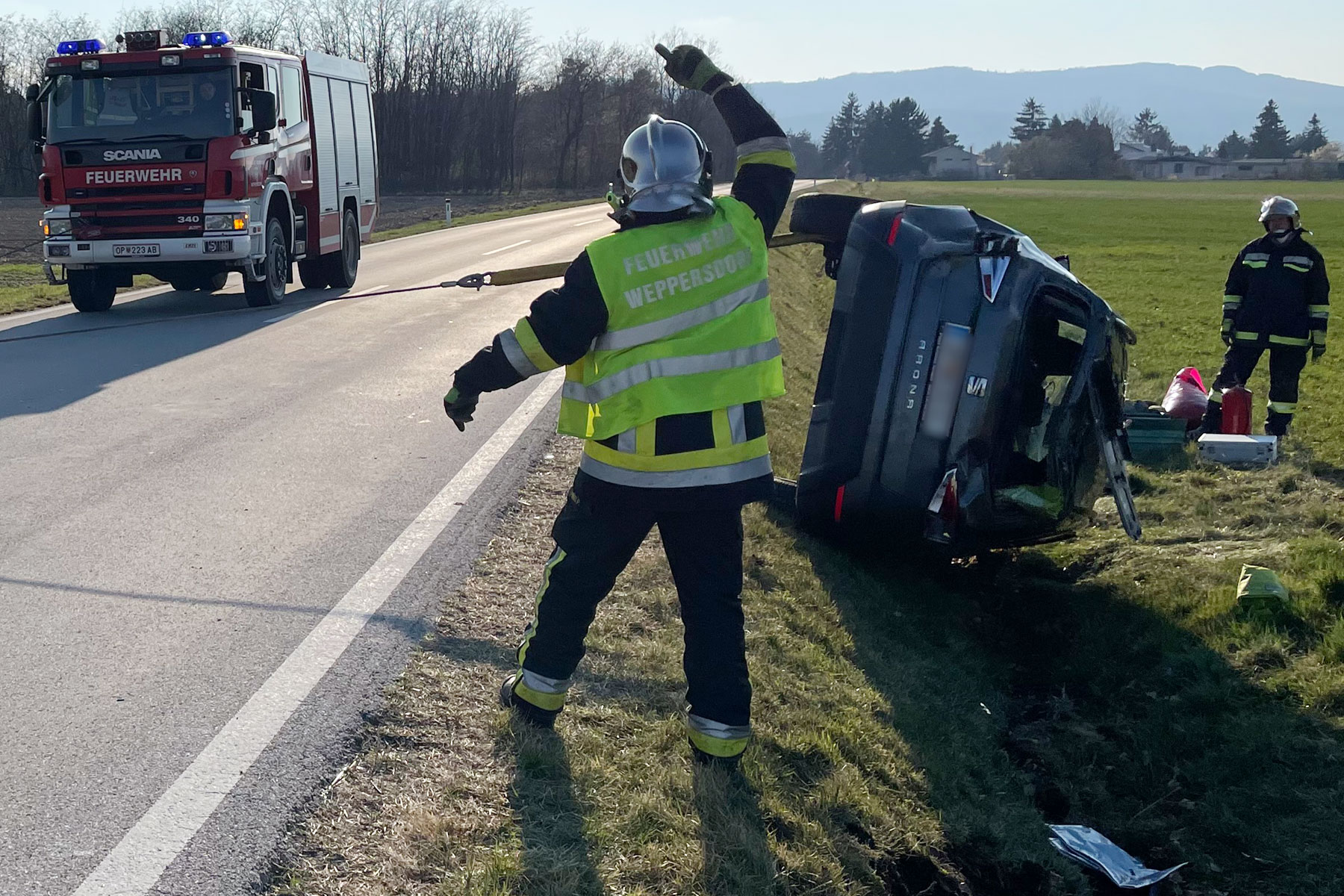 Aus bisher ungeklärter Ursache kam ein Lenker aus dem Bezirk Oberpullendorf am Montagnachmittag zwischen Lackendorf und Weppersdorf von der Straße ab. Sein Fahrzeug überschlug sich dabei und blieb auf dem Dach liegen. Die herbeigerufene Feuerwehr Weppersdorf und der Rettungsdienst sowie die Polizei eilten sofort zur Einsatzstelle. Der Lenker konnte rasch aus dem Fahrzeug befreit werden und wurde nach der Erstversorgung an der Unfallstelle ins Krankenhaus gebracht.